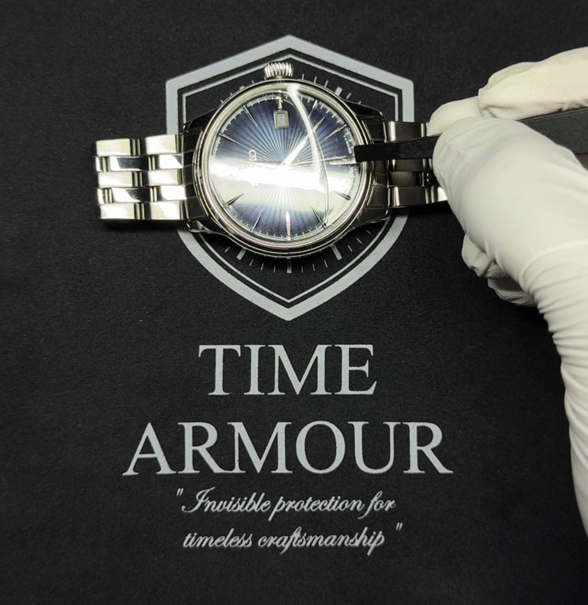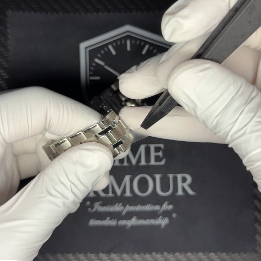 At Time Armour, we see every watch more than just a tool, to us it is a reflection of craftsmanship, heritage, and personal story. Our goal is to protect that story. We use advanced TPU technology, the same trusted in automotive and aerospace industries, to create strong, flexible, and self-healing films. Each one is cut with microscopic precision to fit seamlessly across the watch and bracelet, guarding against scratches and daily wear without altering its design. Unlike bulky cases, our protection is virtually invisible, preserving the original beauty and elegance of every timepiece.