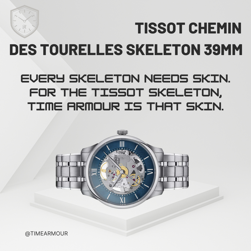 The Tissot Chemin des Tourelles Skeleton 39mm showcases its inner beauty, Time Armour keeps it flawless on the outside. Invisible protection. Everyday confidence.